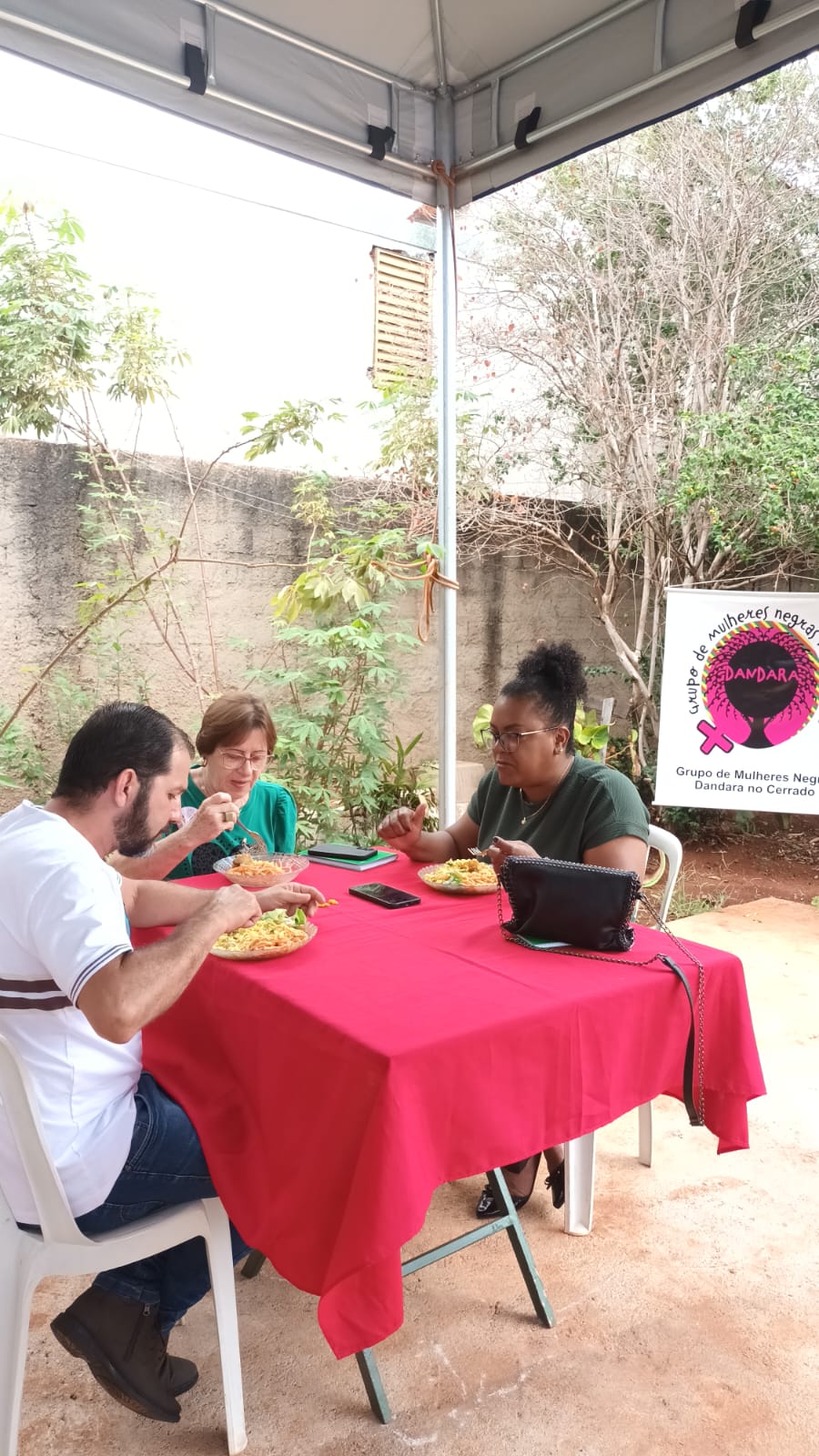 Foi muito bom ficar um dia juntos com as amigas da dandara agente conversou muito sobre o quanto a mulher negra e desvalorizada teve um café da manha muitas coisas pra todos nos depois teve também um almoço muito gostoso e o lanche da tarde ..